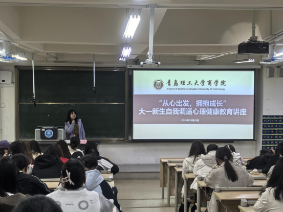 专业赋能,点亮方向。10月29日,学院组织开展“从心出发,拥抱成长”大一学生自我调适心理健康教育讲座,特别邀请青岛市精神卫生中心儿童青少年科主治医师刘洁主讲,300余名2025级学生参加活动,讲座由402cc永利官网辅导员张夕璇主持。刘洁从大学生生活环境、学习模式、人际交往与自我认知四个维度系统剖析了新生面临的适应性挑战,并对“优秀者困境”“社交形象焦虑”等现象提出解决思路。新生易因生活空间、学业方式及社交结构等方面的转变引发心理落差与目标迷茫,刘洁鼓励同学们通过“四象限法则”“番茄工作法”等方式优化时间管理,通过良好生活习惯的养成、情绪管理技巧训练等方式培养积极的心理品质,以强大的心理调适能力应对未来人生路上的机遇与挑战。