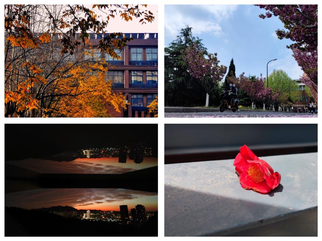 本次活动分为录制短视频、图片附文字两个赛道,学生们以个人或团队投稿的形式参赛,以“青春”、“梦想”、“美好”、“感恩”等为关键词进行创作。参赛同学或制作短视频、或以图文并茂的方式记录母校之美,展示自我青春之朝气,表达对母校的深挚情感。“秋露是一罐颜料”,统计212刘静超以柔情的笔触、温馨的图景表达对母校秋日的礼赞;会计211李湛铃以真挚的言语、唯美的构图抒发在春风与夏花中收获“人生最甜蜜美好的时刻”的喜悦;“早八人是人上人”,国商222艾雨菲在小视频中以轻快活泼的语调记录了入校以来丰富的学习探索与社团活动,展示了珍贵的宿舍情谊和令人赞不绝口的校园美食。