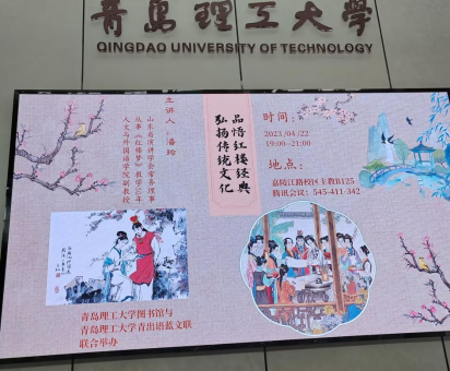 为引导和鼓励在校大学生多读书、读好书,4月22日,时值第二十八个“世界读书日”之际,402永利集团官网图书馆联合青出语蓝文联特邀人文与外国语学院潘玲副教授,在主教学楼B125、B130开展了“弘扬传统文化,品悟红楼经典”主题讲座,此次活动面向全体在校师生。