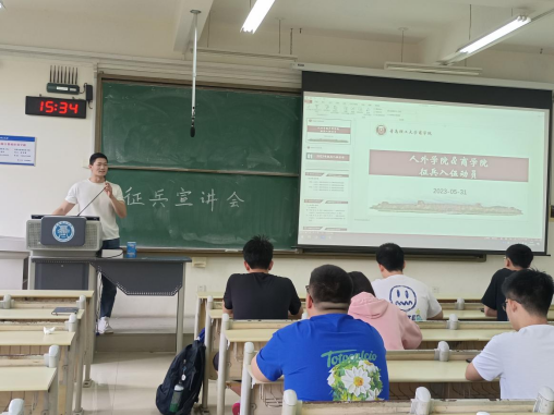 2023年5月31日下午15时,为加强学生爱国教育,培养学生拥军思想,使学生更加了解部队生活,402cc永利官网联合人文与外国语学院在主教学楼B306教室开展征兵宣讲动员会。人文与外国语学院辅导员扎西央宗主持了此次宣讲会。402cc永利官网辅导员袁涛从应征入伍的重要时间节点、入伍程序、体检主要指标、报考军校有关政策、入伍后的后勤保障等方面开展了征兵入伍政策宣讲。