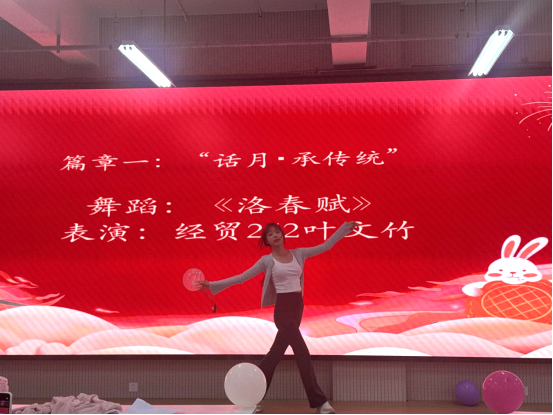 晚会分为“话月・承传统”“话情・暖校园”“话梦・向未来”三个篇章,融合诗词、歌舞、传统游戏与民俗体验等多个环节,增强了学生的参与感与互动感。舞蹈《洛春赋》以古典舞的柔美韵律传递着文化的清雅气息,让中秋的传统意趣在舞姿中愈发鲜活。师生共同演绎歌曲《当月亮爬上来》,以轻快节奏唱出“月下相聚”的美好,将中秋夜对团圆的期盼娓娓道来,营造温馨愉悦的晚会氛围。藏族学生当字吉和汉族学生罗妤雯共同以诗朗诵《中秋月,中华情》传递出各民族同胞在同一轮明月下守望相助、共盼团圆的家国情怀,让“中秋团圆”的意义在民族交融中愈发深厚。吉他弹唱《但愿人长久》将本场晚会推向最高潮,在经典旋律中在场师生齐声和唱,在琴声与歌声的交织里,将“千里共婵娟”的美好期许填满师生心间。
