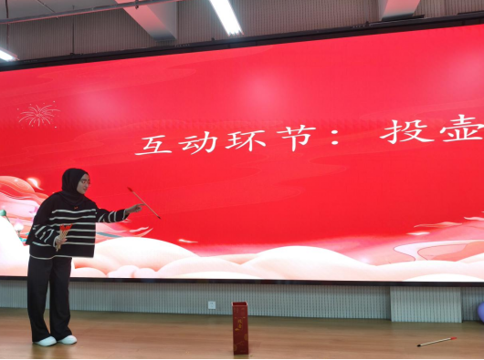 在民俗文化体验环节,设置了猜灯谜、投壶等传统文化项目,为学生提供了一份“沉浸式”的文化大餐。猜灯谜环节融入传统文化习俗、生活常识及专业知识,学生在主动思考、积极互动过程中,共同感受节日的文化氛围;投壶环节打破时空界限,引导学生在亲身参与中感悟古人的节日雅趣,学院阿富汗籍留学生灿娜和摩洛哥籍留学生阿米娜·马鲁夫也积极参与互动环节,既增进了同学们的交流与友谊,也促进了中华优秀传统文化的传播。