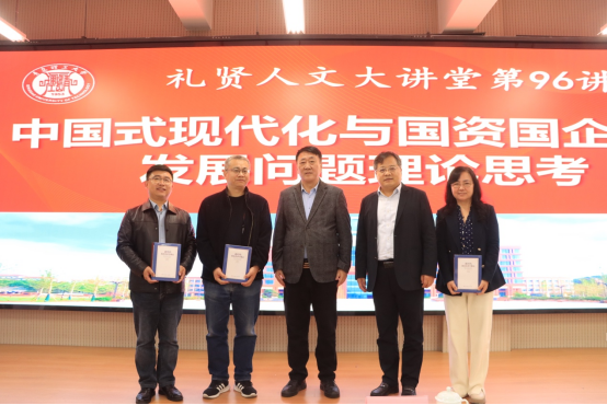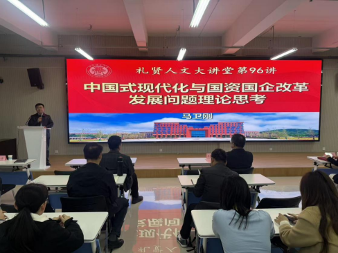 11月12日下午,礼贤人文大讲堂第九十六讲在402cc永利官网401学术报告厅举行。讲座特邀青岛大学职业经理人学院院长马卫刚担任主讲嘉宾,就“中国式现代化与国资国企改革发展问题理论思考”主题开展宣讲。校党委副书记车景华、人文社科处处长宋玲、402cc永利官网党委书记肖学斌与全校师生代表150余人参会,402cc永利官网院长云乐鑫主持会议。
