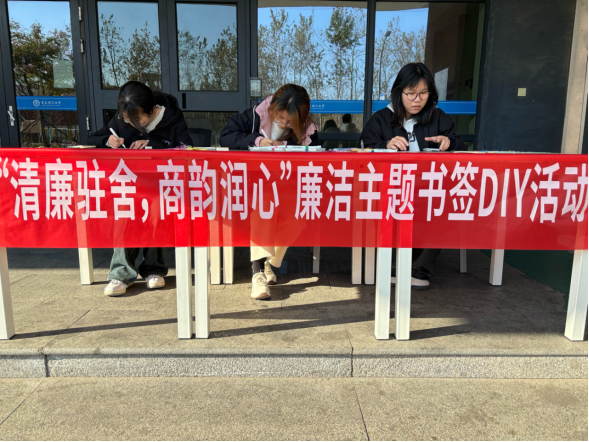 廉洁润心,文化赋能养廉德。11月19日,北区三公寓开展的“清廉驻舍,商韵润心”主题书签 DIY 活动,以文化创作唤醒廉洁共鸣,让廉洁理念浸润心灵。近百名学子围绕“廉洁”主题展开创作,或以荷花“出淤泥而不染”、竹子“虚心劲节”等传统意象为灵感,手绘清雅图案;或挥毫书写“洁身自好”“清廉守正” 等廉洁寄语;或结合商科专业特色,设计“诚信经商”“廉洁从业”等创意内容,将对廉洁文化的理解与敬畏凝练于方寸书签之上。在一笔一画、一字一墨间,学子们不仅感受着传统文化与廉洁精神的交融,更让崇廉尚洁的种子在心中生根发芽,实现以文化人、以廉润心的育人效果。